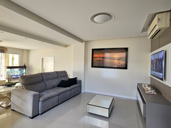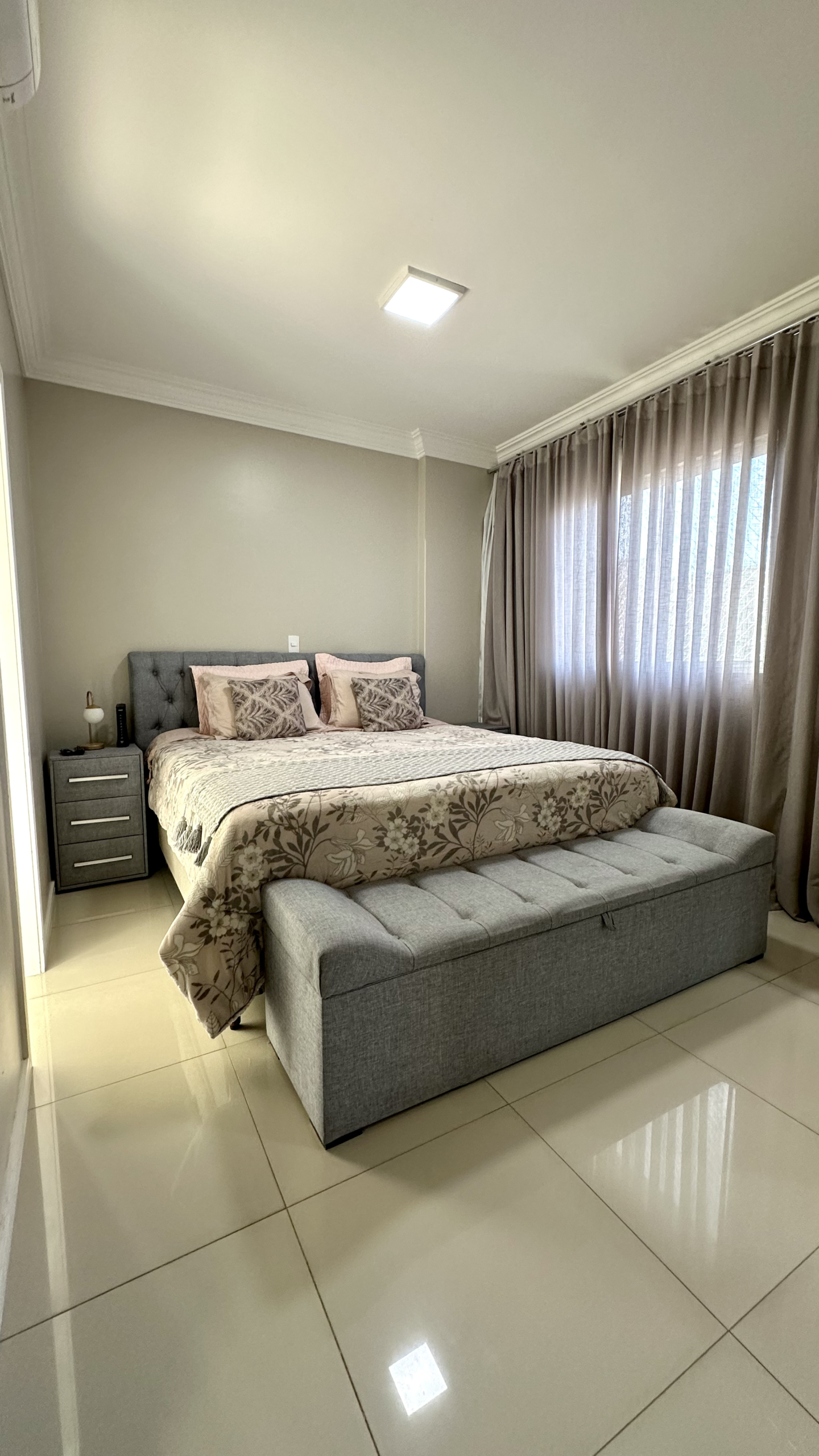 O imóvel conta com 5 quartos, sendo 4 suítes, proporcionando privacidade e conforto para toda a família. Possui ar-condicionado, closet, interfone, aquecedor a gás e despensa, além de uma sacada com churrasqueira, perfeita para momentos de lazer e confraternização. São 2 vagas de garagem, com box privativo, garantindo comodidade e segurança.