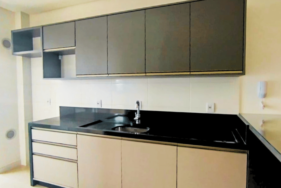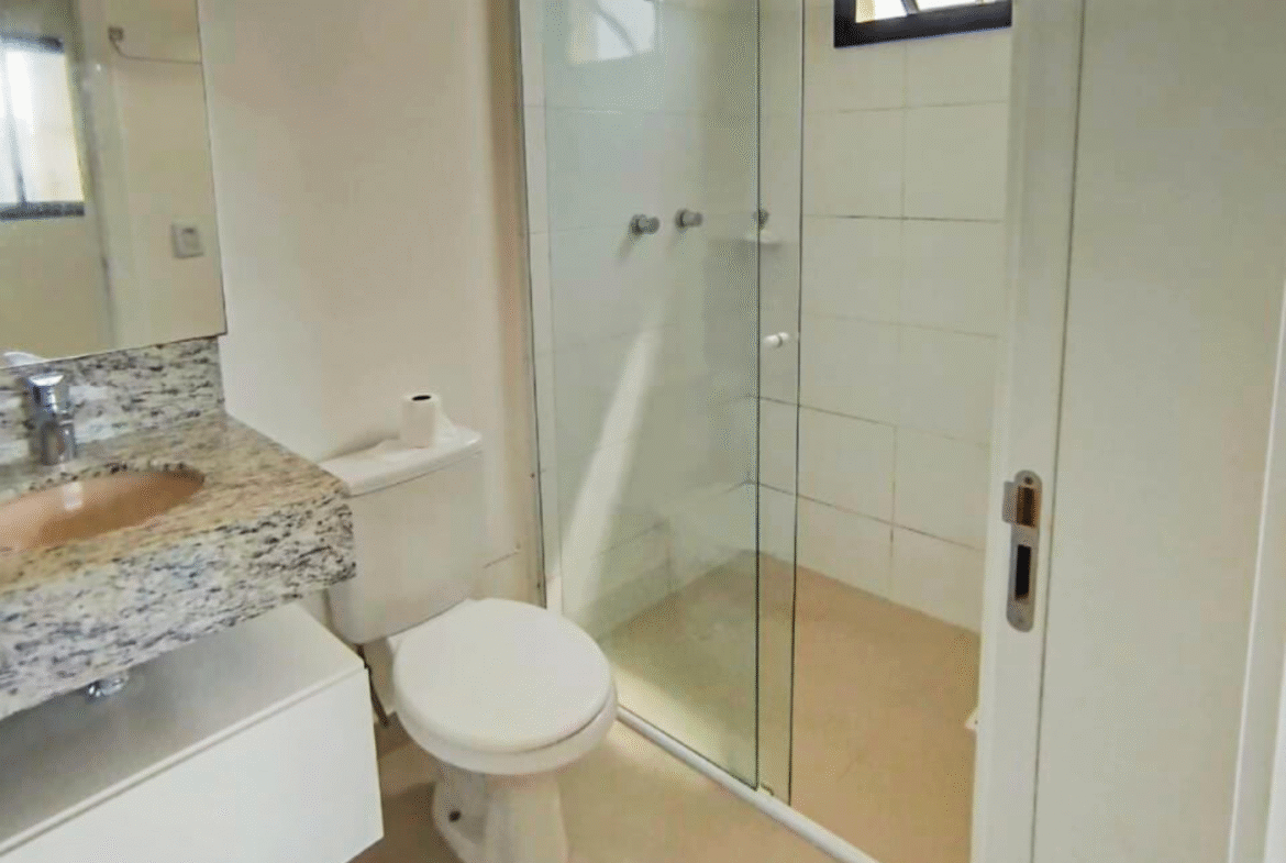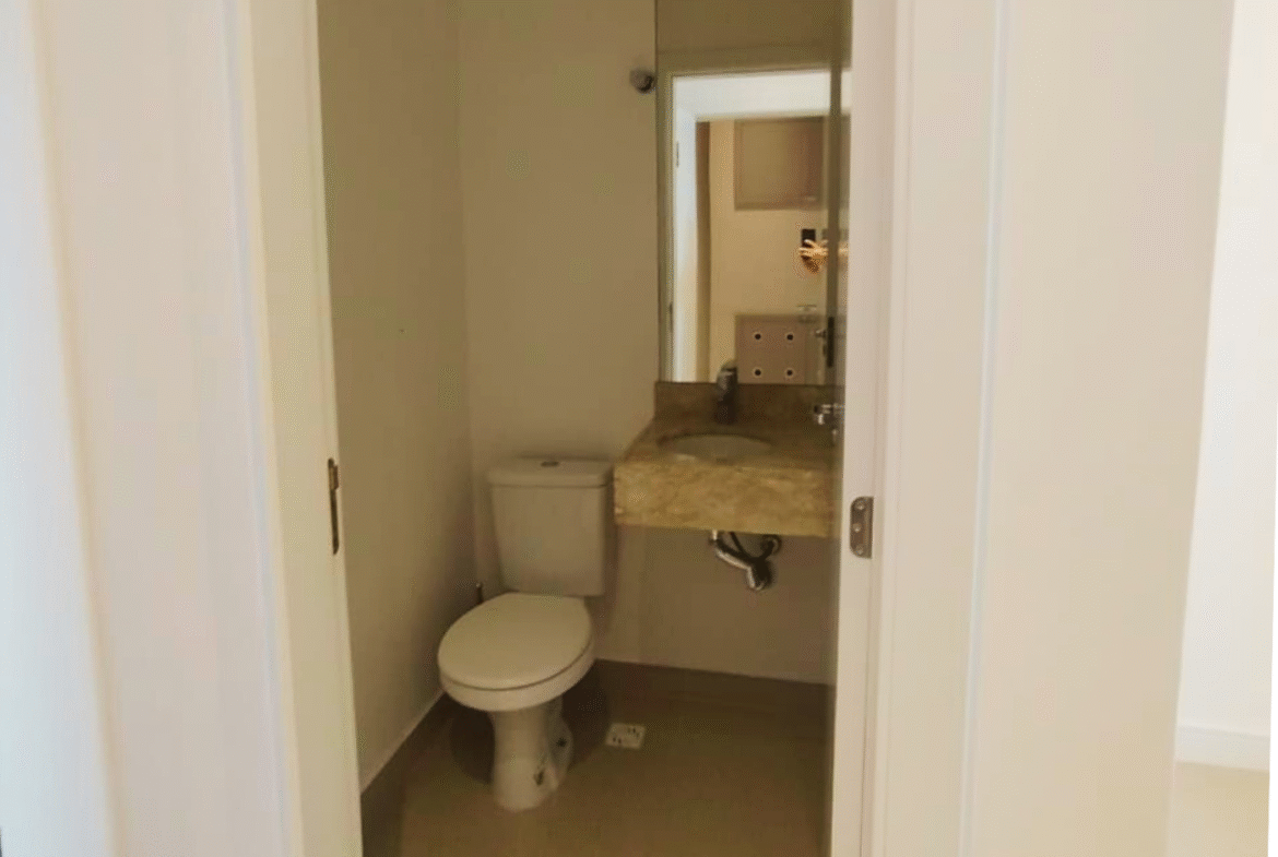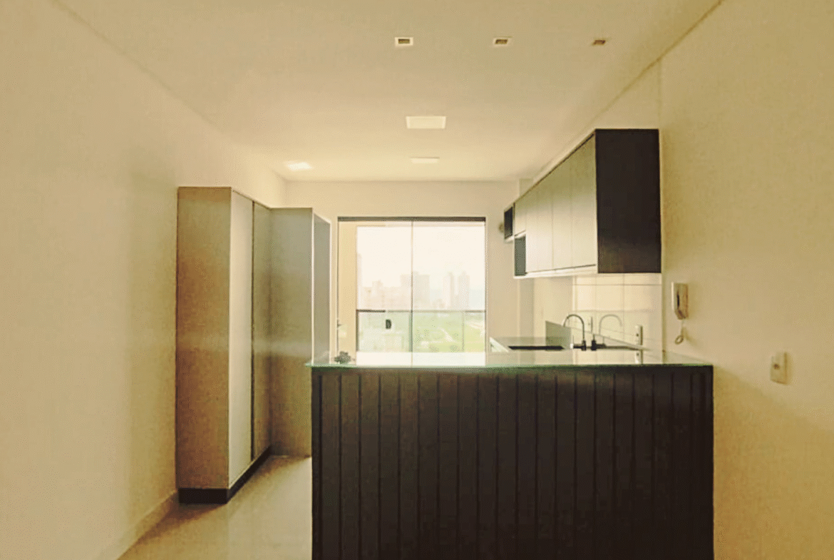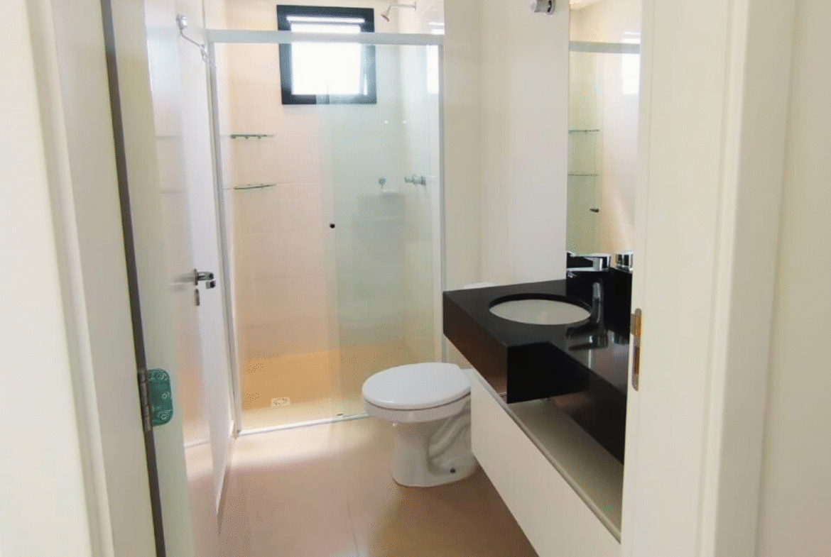 Apartamento novo e semimobiliado, com 2 suítes, 3 banheiros (sendo 2 privativos e 1 lavabo) e 1 vaga de garagem.