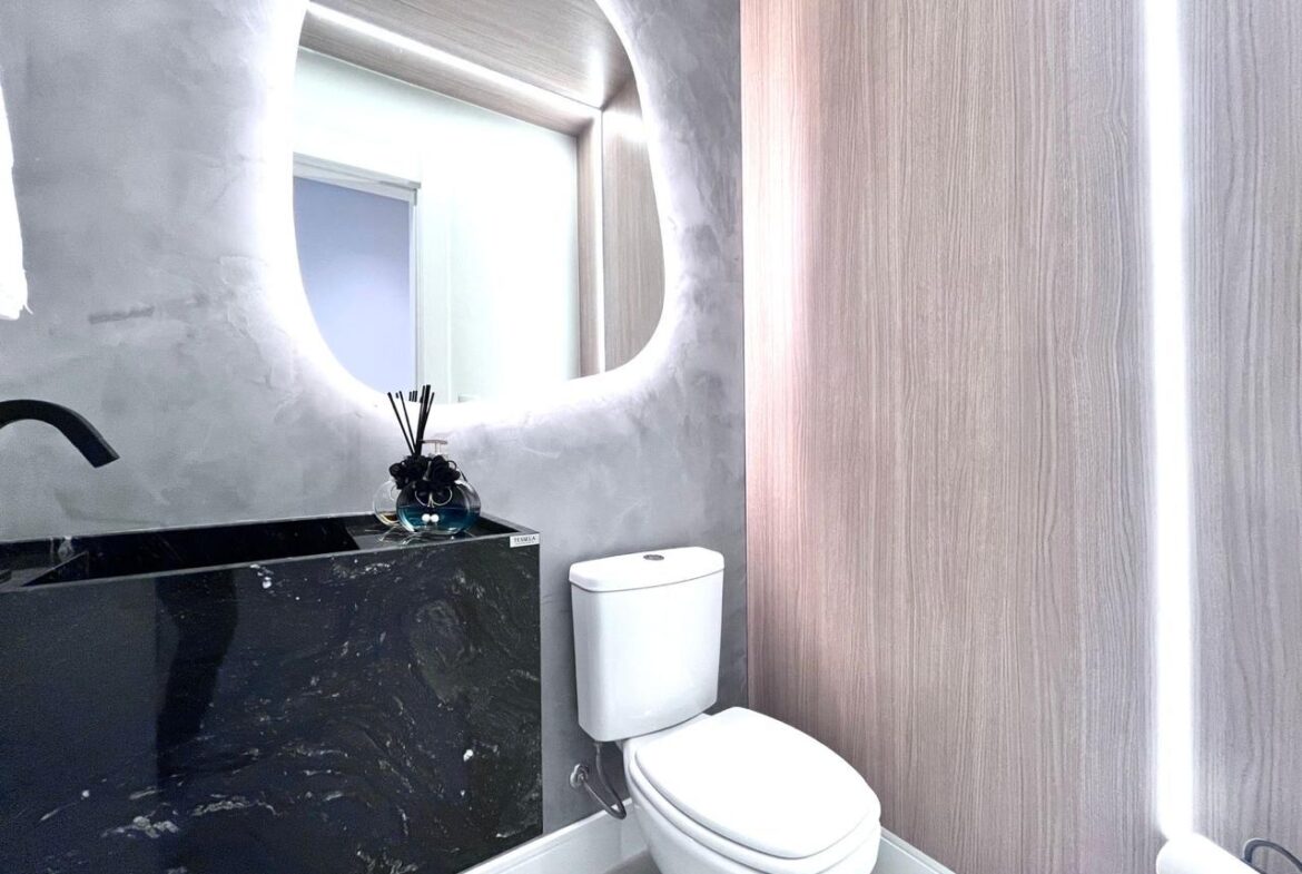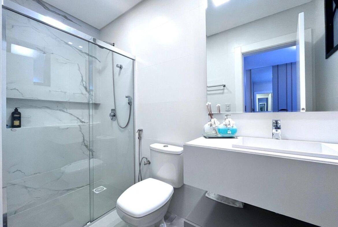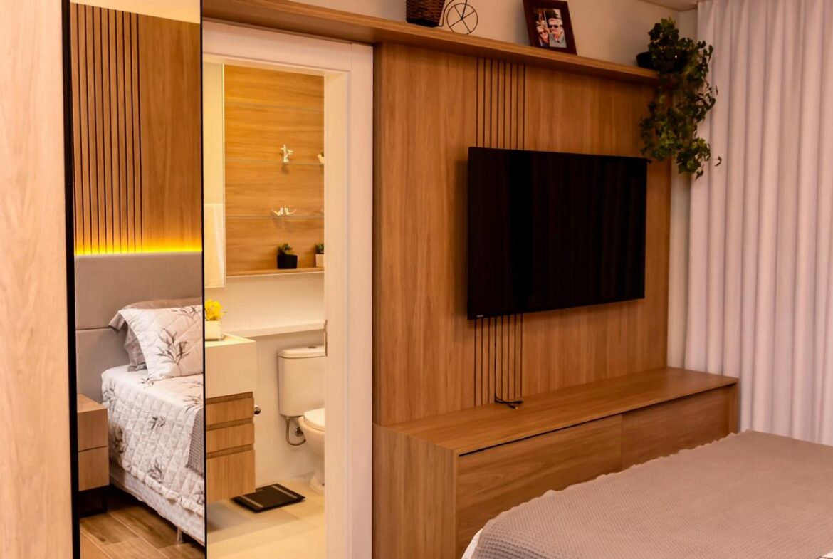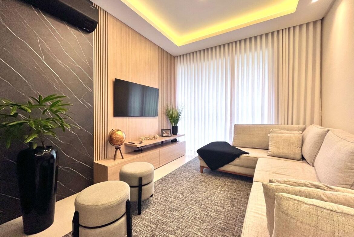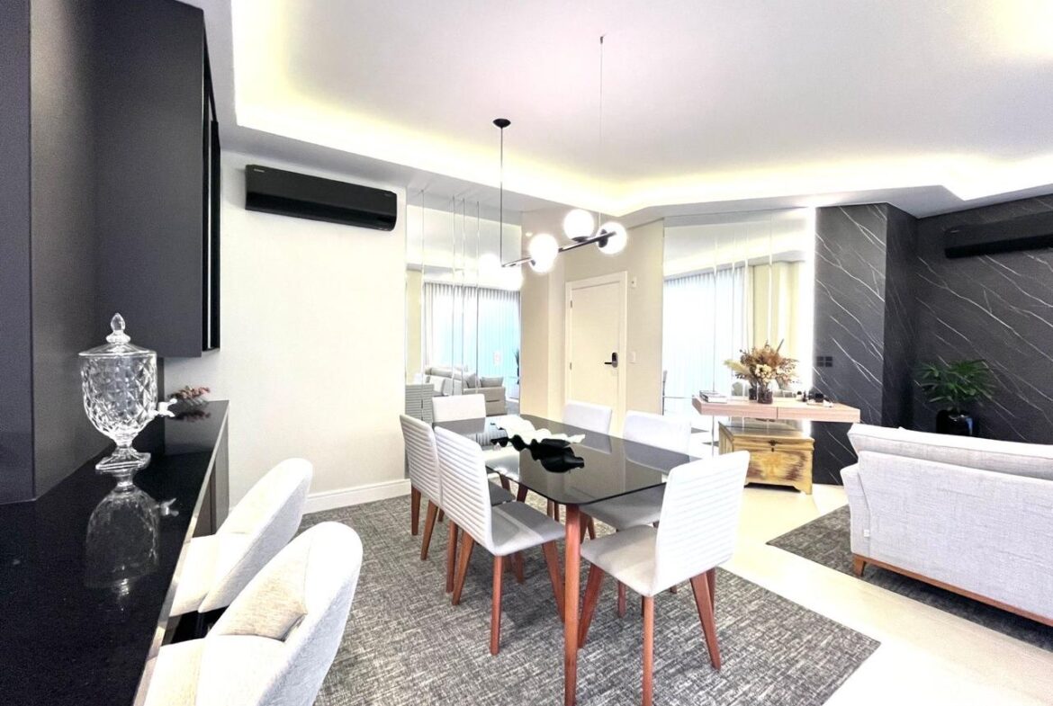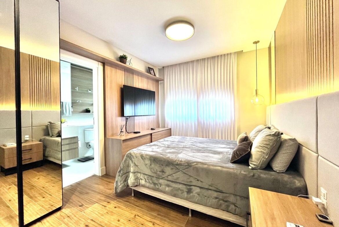 Apartamento novo e mobiliado, com 3 suítes, 3 banheiros e 2 vagas de garagem.