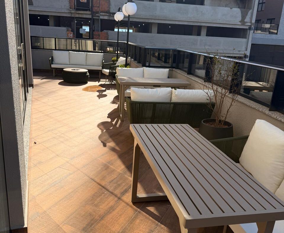 Apartamento recém-construído, com 3 suítes, 4 banheiros (sendo 1 lavabo) e 2 vagas de garagem.